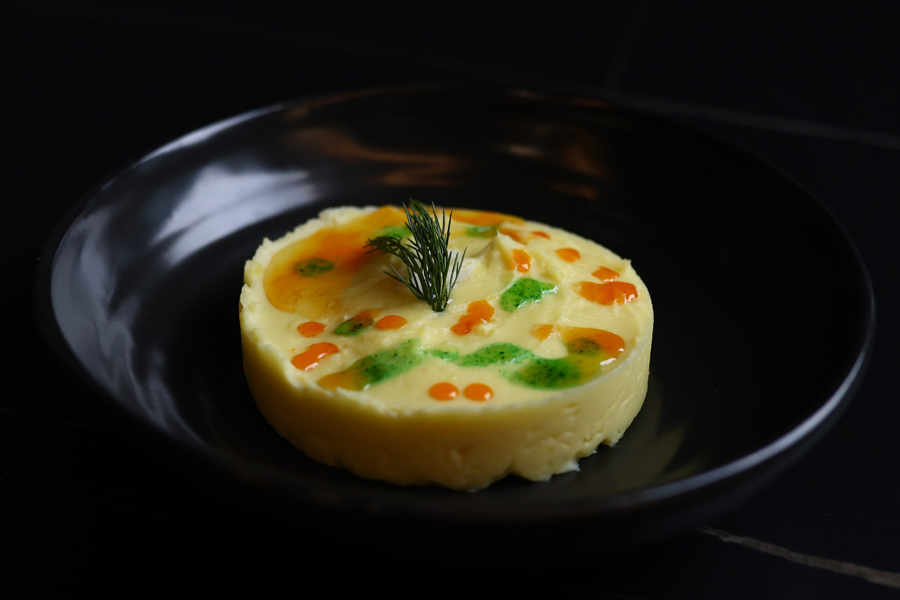 Склад: дикий рис, чорнило каракатиці, пармезан, соус дор-блю, креветка, мідія в мушліГарніриДикий рис з труфельною олією морепродуктами та чорним каракатиці