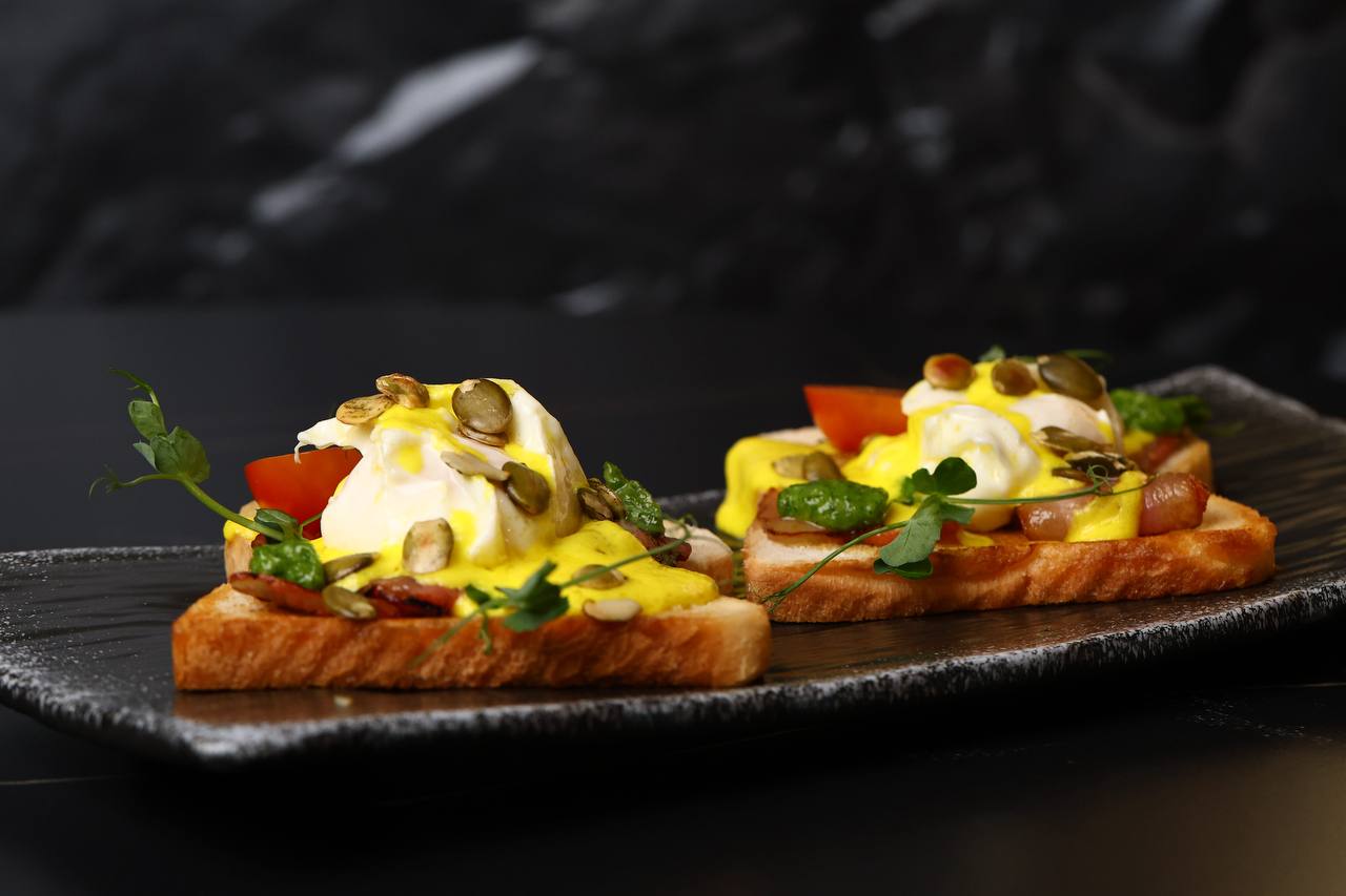 215 ₴Склад : курячі яйця, сосиски на грилю (індичі ) бекон ,квасоля у томатному соусі ,печериці, шпинат, хліб пшеничний